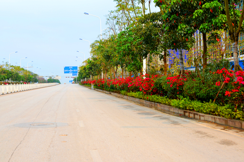 本項(xiàng)目位于國(guó)凱大道,于2014年12月開工,2015年1月完工,綠化面積約1200㎡,種植主要品種有:朱槿、夾竹桃、非洲茉莉、木槿、紅花繼木、三角梅、星光榕、亮葉朱蕉、銀邊沿階草等