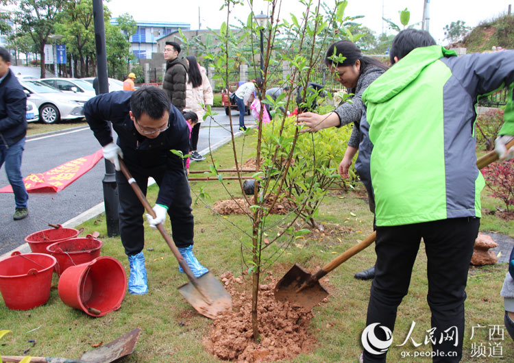 人民網(wǎng)南寧3月11日電 陽春三月,萬物復(fù)蘇,生機(jī)勃發(fā)。3月9日,細(xì)雨紛飛,春寒料峭,但是南寧經(jīng)開區(qū)的綠港·國際中心卻人潮涌動(dòng),愛意濃濃。原來,南寧綠港集團(tuán)正在舉行“情暖童心·攜手植綠”學(xué)雷鋒志愿服務(wù)月活動(dòng),200多名職工和家屬一起參加了當(dāng)天的愛心義賣、愛心捐贈(zèng)和義務(wù)植樹活動(dòng)。