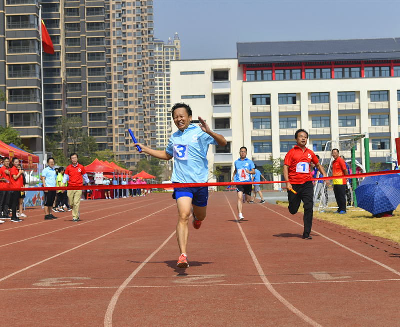 《向前沖!》(集團辦公室 吳靄濤)圖片說明:2019年職工運動會上,接力比賽隊員正在全力沖刺終點。