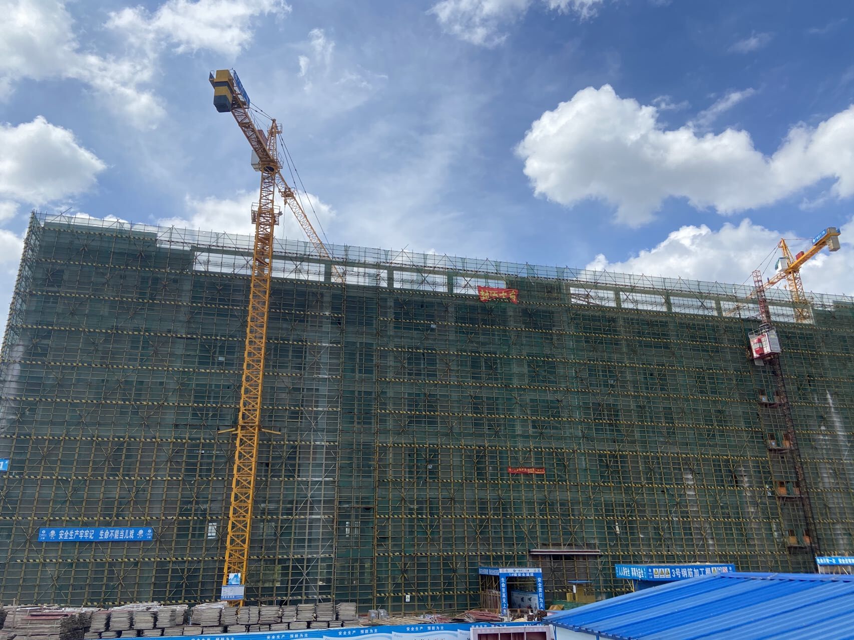 在項(xiàng)目施工過程中,綠港集團(tuán)堅(jiān)持做好項(xiàng)目各樓棟臨邊防護(hù)標(biāo)準(zhǔn)化、用料場地封閉標(biāo)準(zhǔn)化、設(shè)置安全宣傳長廊、裸土覆蓋措施、塔吊與道路噴淋系統(tǒng)、車輛沖洗系統(tǒng)、門禁與實(shí)名制管理系統(tǒng)、安全交底和特殊工種教育等工作,每周召開安全文明施工專項(xiàng)會(huì)議,對(duì)于安全文明月度檢查發(fā)現(xiàn)的安全隱患問題項(xiàng)目部做到高度重視,積極安排安全員專人跟蹤整改,在規(guī)定時(shí)間內(nèi)按標(biāo)準(zhǔn)化要求整改完成。項(xiàng)目部積極開展安全演練、知識(shí)競賽、安全會(huì)議、班組活動(dòng)、三級(jí)教育等活動(dòng)宣傳安全生產(chǎn)知識(shí),進(jìn)行安全生產(chǎn)教育,增強(qiáng)建設(shè)人員安全生產(chǎn)意識(shí)。